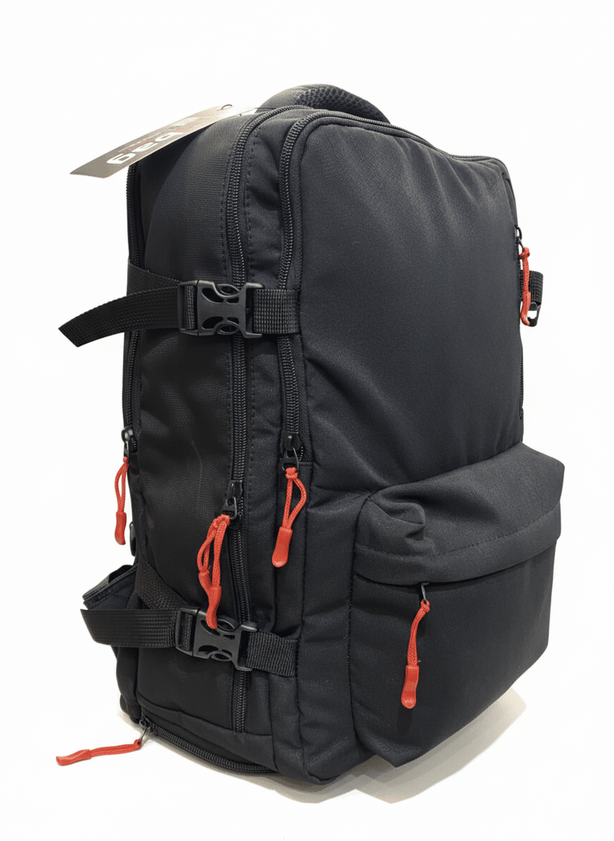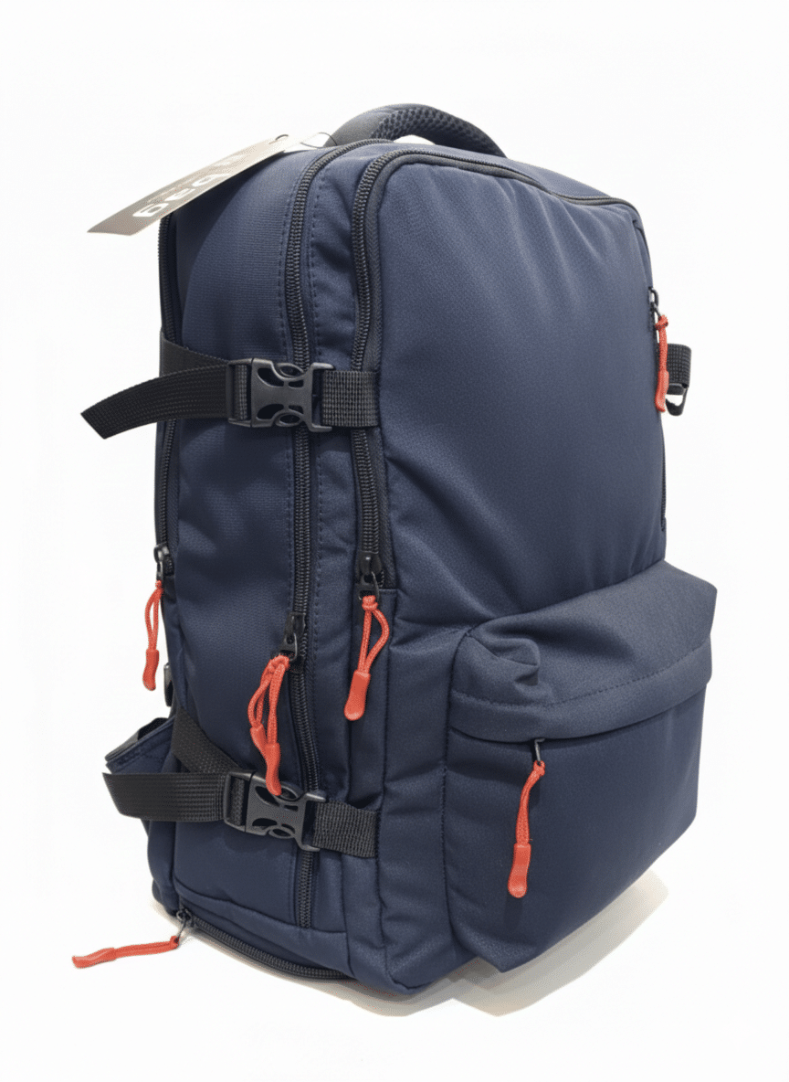 شنطة ظهر عملية وسعتها ممتازة، فيها جيب أمامي كبير للتنظيم، وأحزمة تثبيت جانبية لثبات أعلى أثناء التنقل. سحّابات مميزة تضيف لمسة ستايل—مناسبة للجامعة والشغل والمشاوير اليومية.
