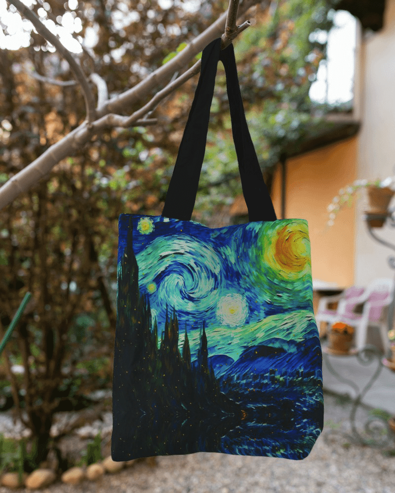 حقيبة توت عملية من قماش تقيل بمقاس 33×38 سم، بداخلها جيب بسوستة + جيب بدون سوستة، ويد شريط مُحمّل مريح للكتف.